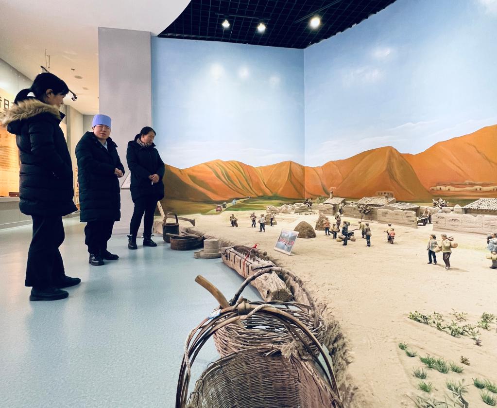 马慧娟(中)和同事在宁夏移民博物馆。新华社记者 杨植森 摄