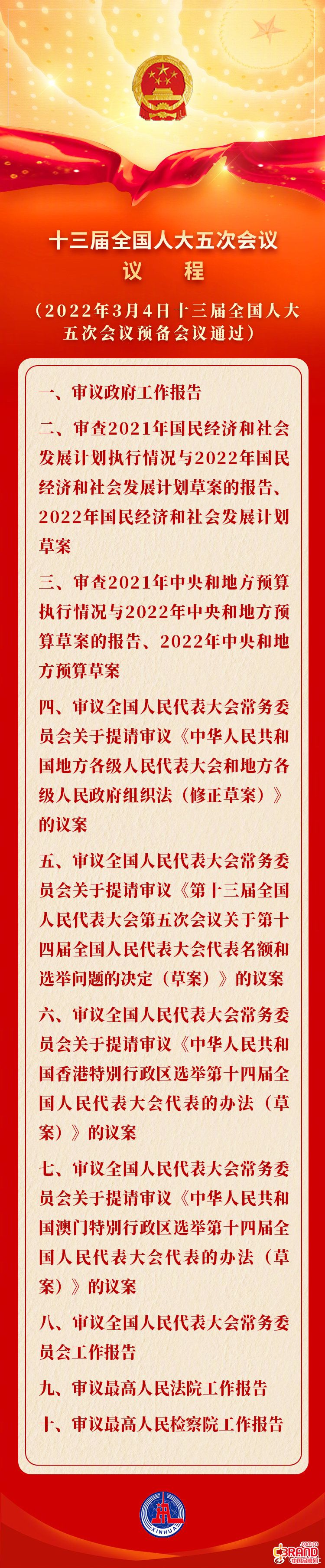 第十三届全国人大五次会议议程