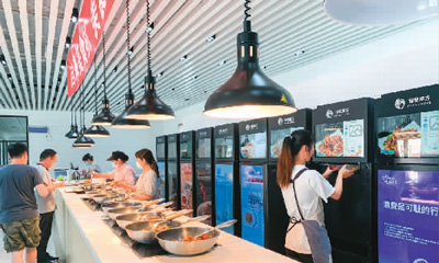 8月中旬的一天上午,在山东青岛市即墨经济开发区科创中心,一个名为“味来逸站”的机器人餐厅座无虚席,大厅内一侧,数台外观酷似冰箱的美食机器人“一”字排开